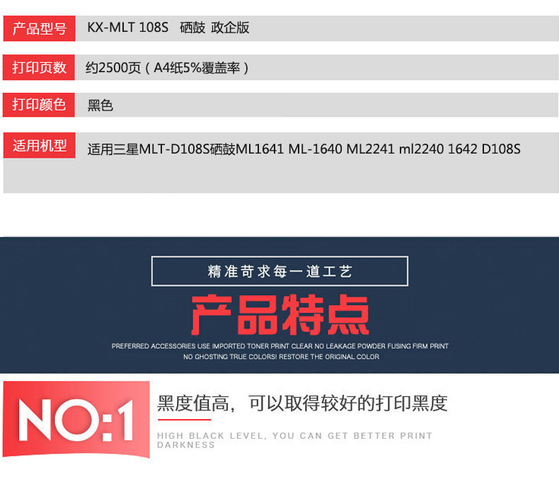 凱欣KX-MLT108S 適用三星MLT-D108S硒鼓ML1641 ML-1640 ML2241激光打印機(jī)墨盒ml2240 全國統(tǒng)一價:295元